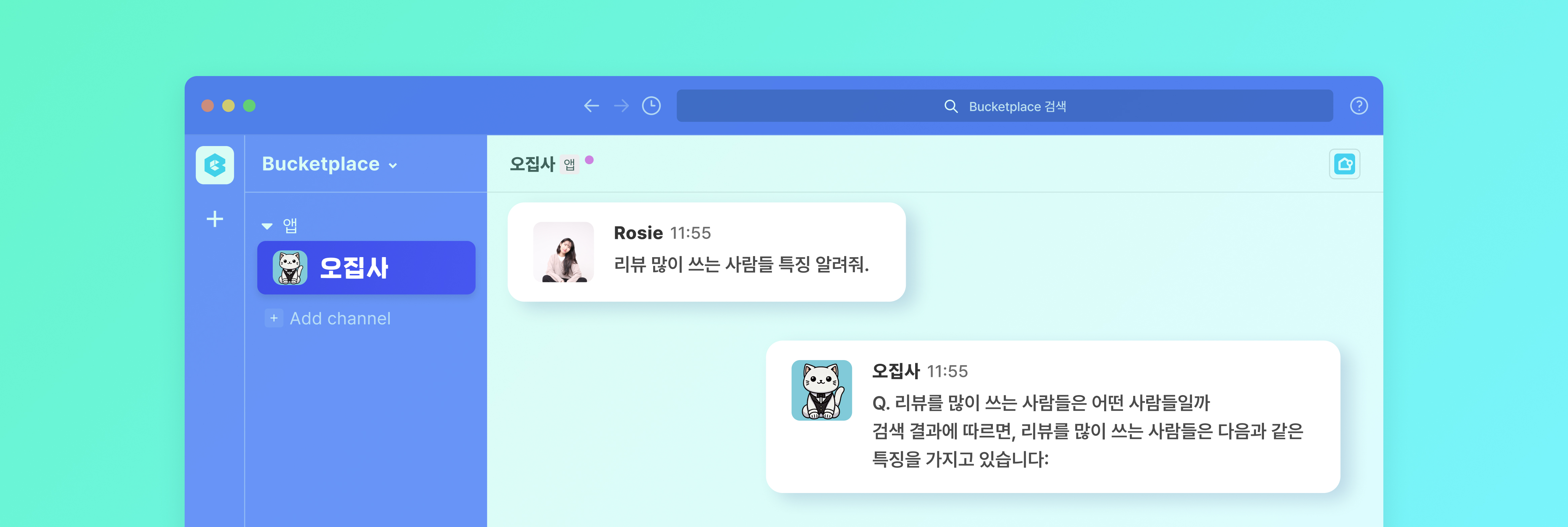 가장 먼저 해결하고 싶었던 건 여러 곳에 흩어져 있던 리서치 자료들이었어요. 그래서 리서치 리포지토리*인 ‘유저위키’를 구축했고, 여기에 AI를 접목해 다양한 형태의 리포트와 인터뷰 내용을 더 빠르고 효율적으로 정리하고 저장할 수 있도록 했습니다. 인터뷰 중 수집된 고객의 말(user quotes)은 GPT 기반 Agent가 전사된 데이터 전처리를 돕고, 연관된 내용을 쉽게 찾을 수 있도록 지원합니다. 슬랙에 연동된 대화형 AI를 통해 “이사를 준비하는 유저가 겪는 문제점이 뭐야?”처럼 자연어로 질문하면, 관련된 데이터를 찾아 요약된 답변을 바로 들을 수 있죠. 덕분에 유저의 생생한 목소리를 손쉽게 확인할 수 있게 되었어요.